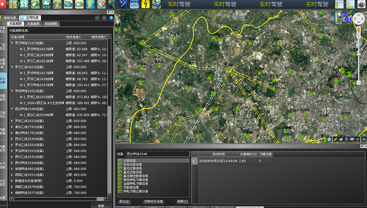 实用化应用场景集成与实现,如设备统计、厂站电压、线路负载率、断面监视、气象影响分析、台风监视、地震信息、电源点追踪、供电停电范围分析、过载转供分析,安全N-1分析等。